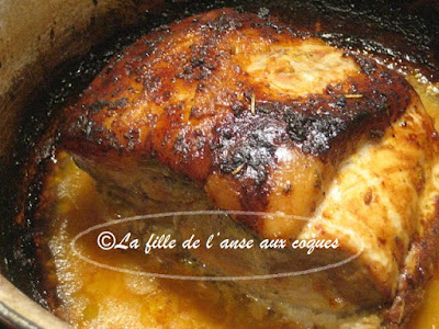 Je ne cuisine pas souvent les pièces de porc, et quand je veux le faire, je suis toujours un peu embêtée pour choisir une recette qui nous plaira. C'est ici que j'ai trouvé ce qui me semblait être parfait pour nous. On suggère l'utilisation d'une épaule de porc mais j'ai déjà cuisiné un braisé avec une longe, et je me disais que la pièce de viande que j'avais ferait l'affaire dans le cas de cette dernière recette. La recette est simplissime et les ingrédients très accessibles. Je n'avais aucun doute que ce serait bon et goûteux. Et je ne me suis pas trompée. Si vous aimez avoir beaucoup de sauce dans votre assiette, je vous suggère d'ajouter un peu de bouillon supplémentaire dans la deuxième partie de la cuisson. J'ai servi avec une purée de pommes de terre et de patates douces ainsi que des choux de Bruxelles et carottes poêlés. Un délicieux repas!