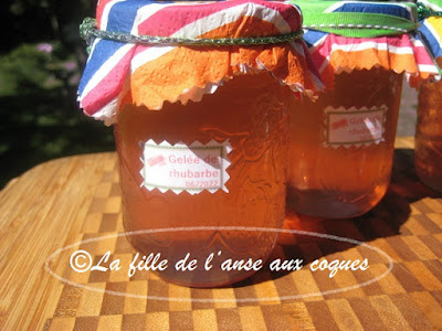 Je n'en suis pas à mes premières armes avec la gelée, et quand j'ai vu cette gelée de rhubarbe ici, je me suis dit que ce pouvait être fort intéressant à présenter dans mes sacs gourmands du temps des fêtes. J'ai fait une "petite" recette parce que j'avais peu de rhubarbe, mais si vous en avez en quantité, vous pouvez facilement doubler, La préparation est simple et je n'ai eu aucune embûche. Il me restait un "ptit" fond de marmite de gelée bien prise à vous montrer, ce qui m'a aussi permis d'y goûter. Le goût caractéristique de la rhubarbe y est bien présent, avec son côté acidulé bien balancé par le sucre. Sur une rôtie le matin au déjeuner avec du fromage, ce sera le bonheur total. Une belle réussite!