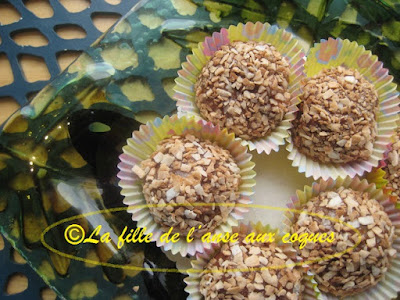 Voici la troisième gâterie dénichée ici que j''ai préparé pour Pâques. J'ai déjà fait une truffe avec du Kalhua, et j'avais adoré le bon goût que cette liqueur donnait à la gourmandise. Pas d'hésitation à cuisiner cette nouvelle recette qui me semblait originale. Vous pourriez utiliser un autre type de liqueur pour confectionner ces boules. Le Bailey's aussi suggéré serait certainement intéressant, tout comme l'Amarula ainsi que plusieurs autres liqueurs. N'hésitez pas à essayer avec l'alcool que vous avez sous la main ou que vous aimez.